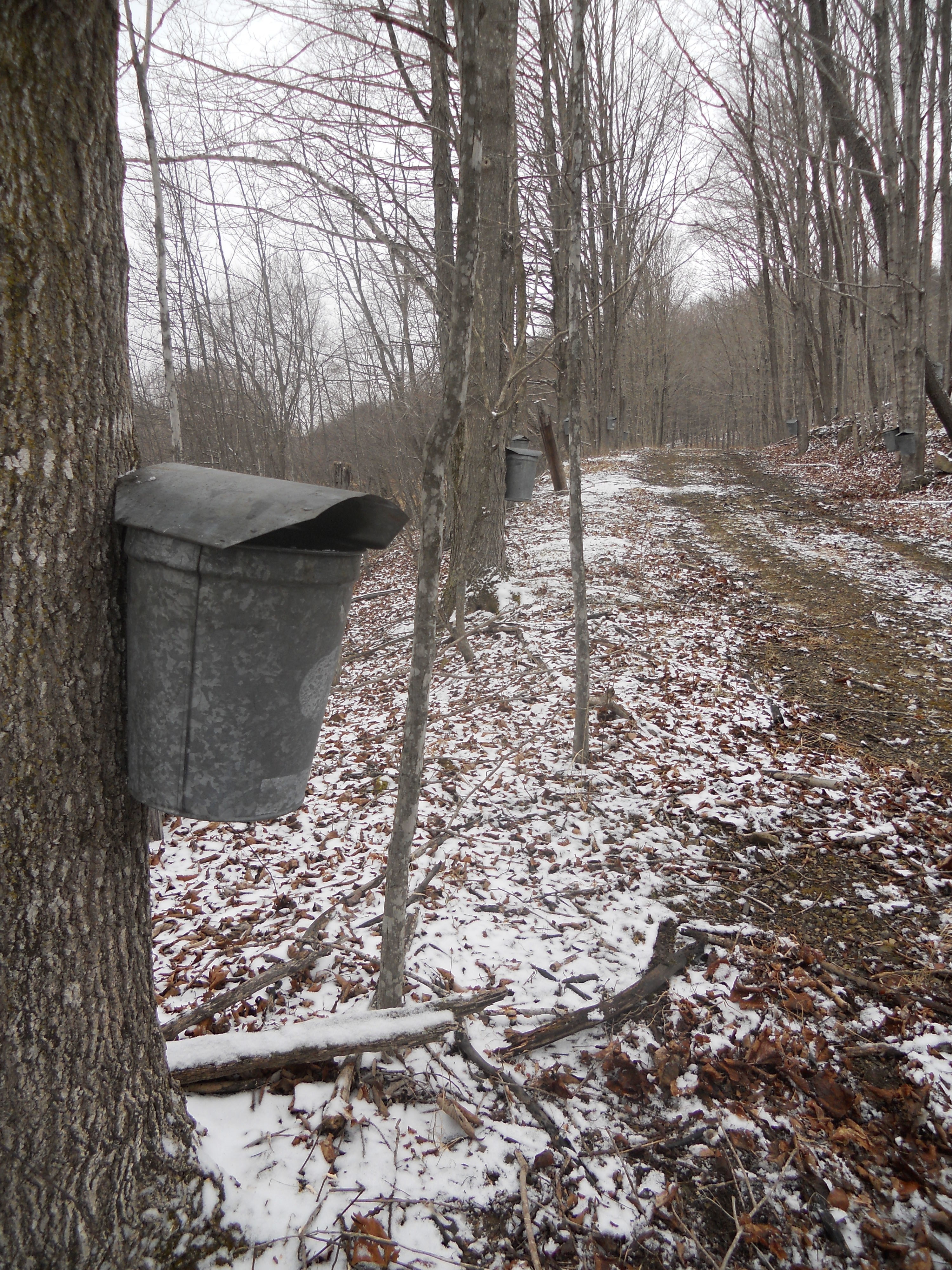 We still tap part of our trees with old fashion buckets , but also have miles of tubing .